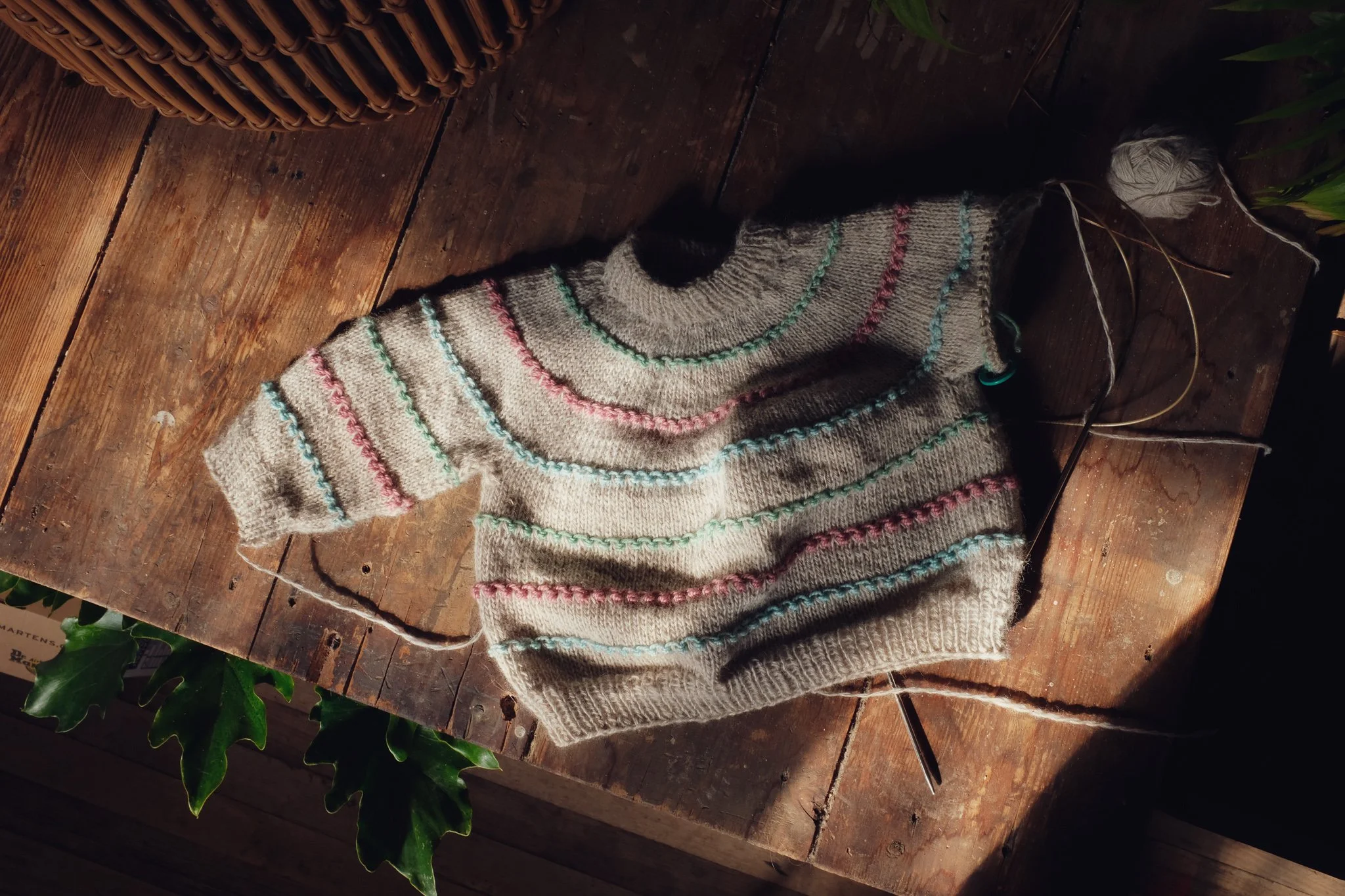 Progress on the festival sweater has been slow because of my burnt fingers, but when a baby sleeve only has 56 stitches on it, slow is still steady.