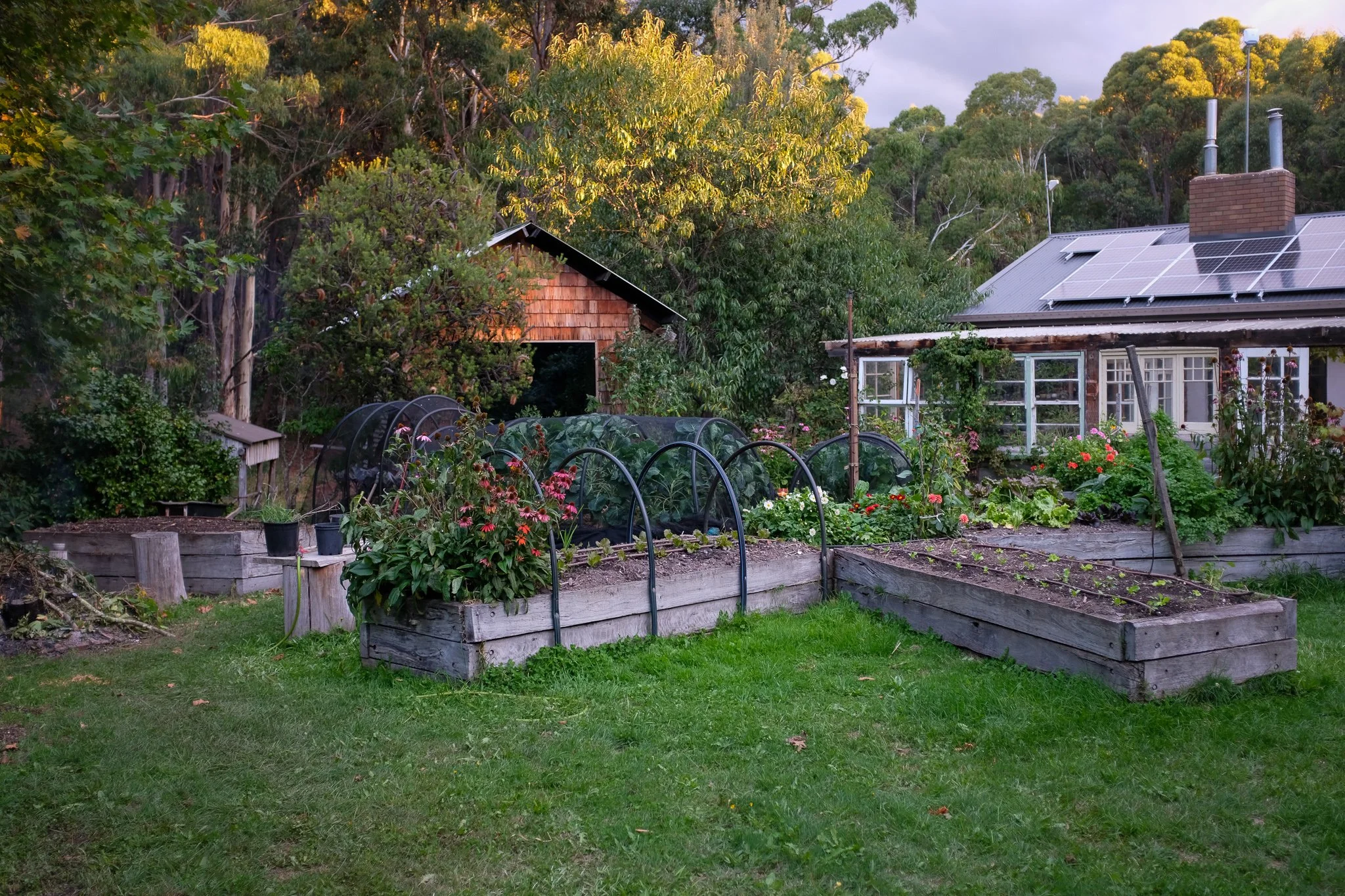 two - Last week, after the benign cancer verdict, I showed you photos of empty shelves as we were in the process of pulling everything down, cleaning them, and then putting everything back up again. I feel like this week we’ve done the same with the house garden. Weeding, and digging up, and planting, and tying up, and harvesting.