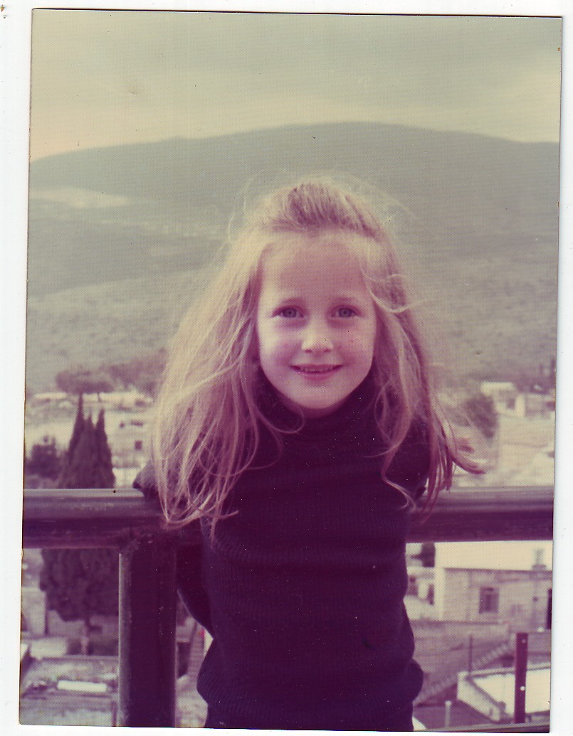 We travelled quite a bit when you were young. You lived in London and on a kibbutz in Israel, and we travelled with a tent through Europe. This is on a bridge in Safed, Israel.